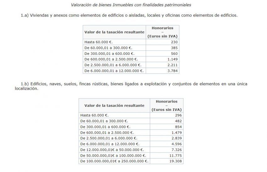 La Resolución de 11 de mayo de 2015, de la Subsecretaría, por la que se modifican diversas tarifas generales aplicadas por la Sociedad Estatal de Gestión Inmobiliaria de Patrimonio, SA., incluye tarifas correspondientes a valoración de bienes Inmuebles con finalidades patrimoniales